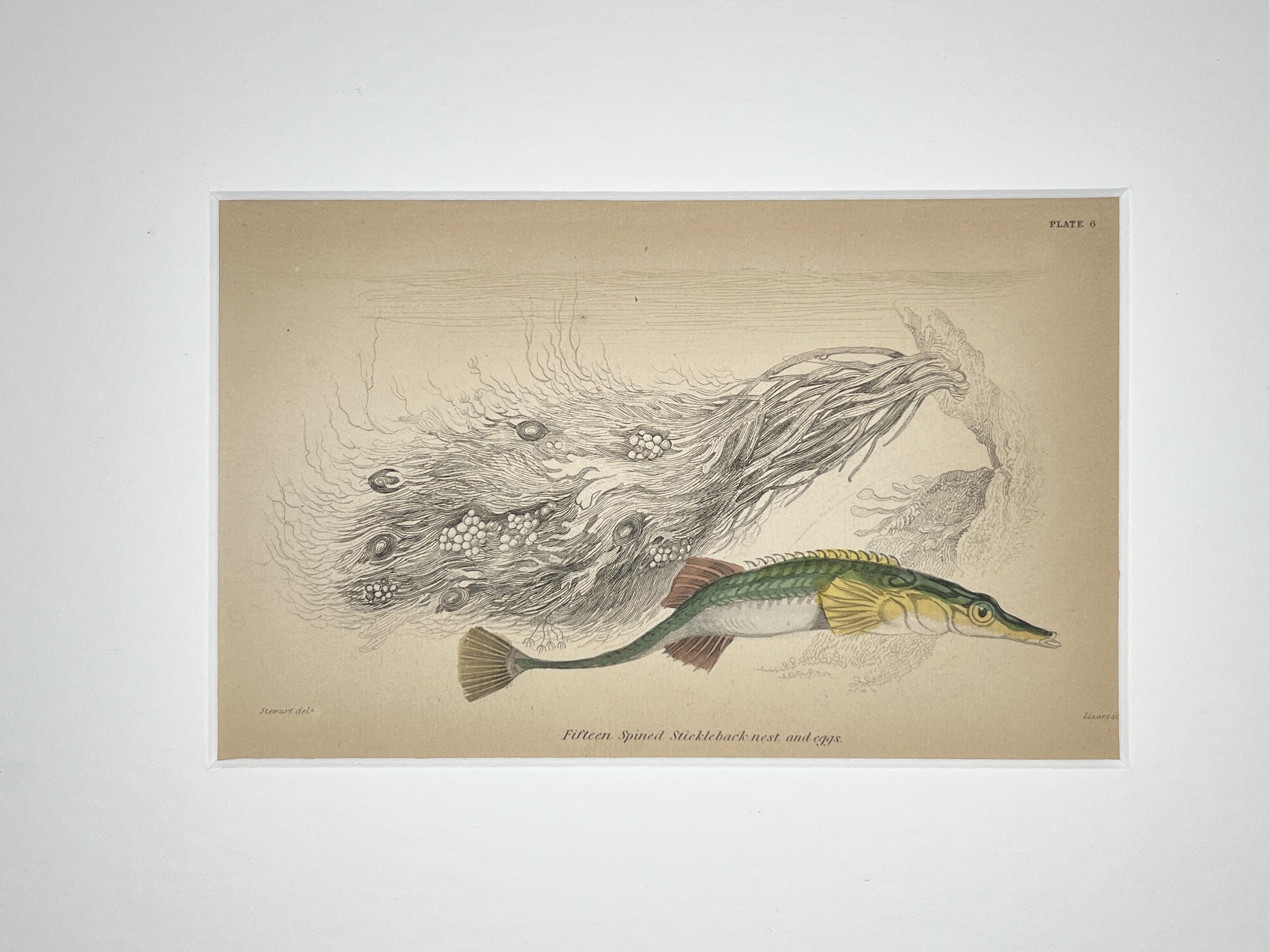 Offered for sale is an antique hand-colored engraving from Ichthyology, British Fishes, Part I edited by Sir William Jardine and published between 1841 and 1843. Each engraving is approximately 4” by 6” and comes matted and mounted on acid free archival materials.