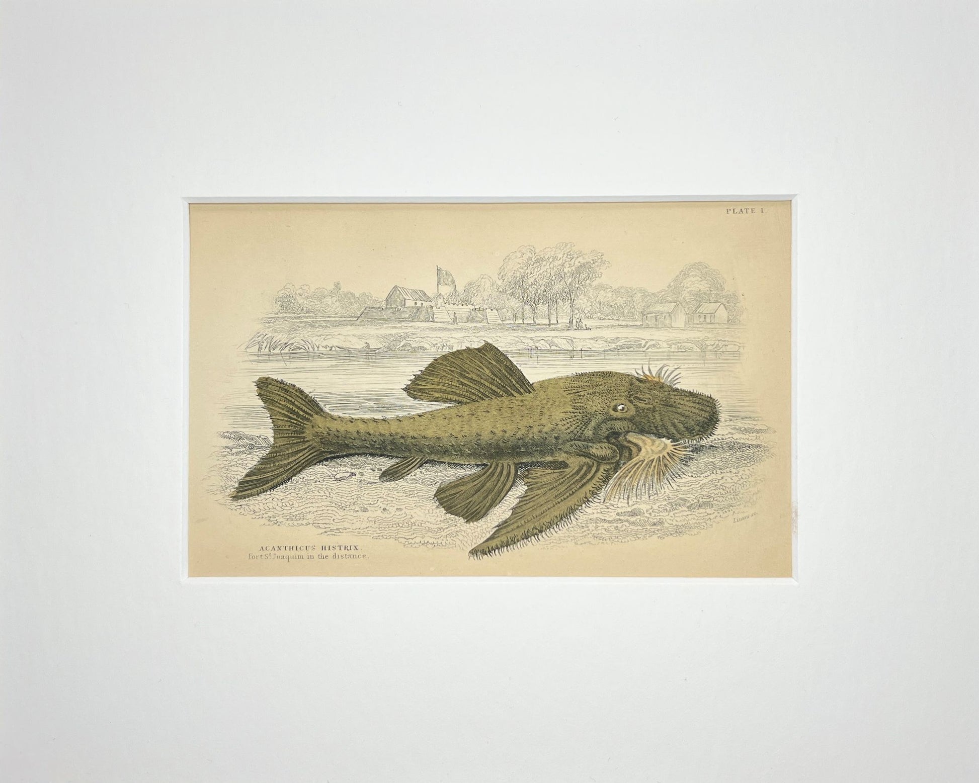 Offered for sale is an original antique 4” by 6” hand-colored lithograph from Fishes of British Guiana edited by William Jardine and published between 1841 and 1843. The print comes matted and mounted in acid free archival materials.