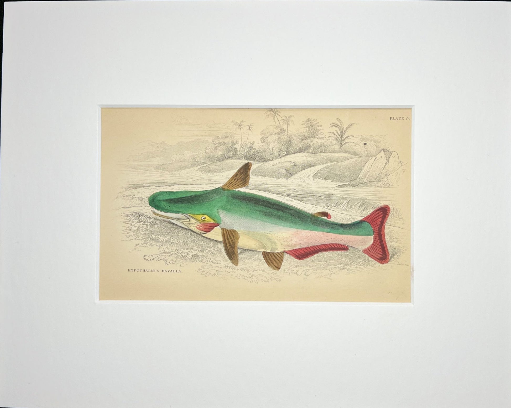 Offered for sale is an approximate 4” by 6” hand colored lithograph from Fishes of British Guiana edited by William Jardine and published between 1841 and 1843. The print comes matted and mounted in acid free archival materials.