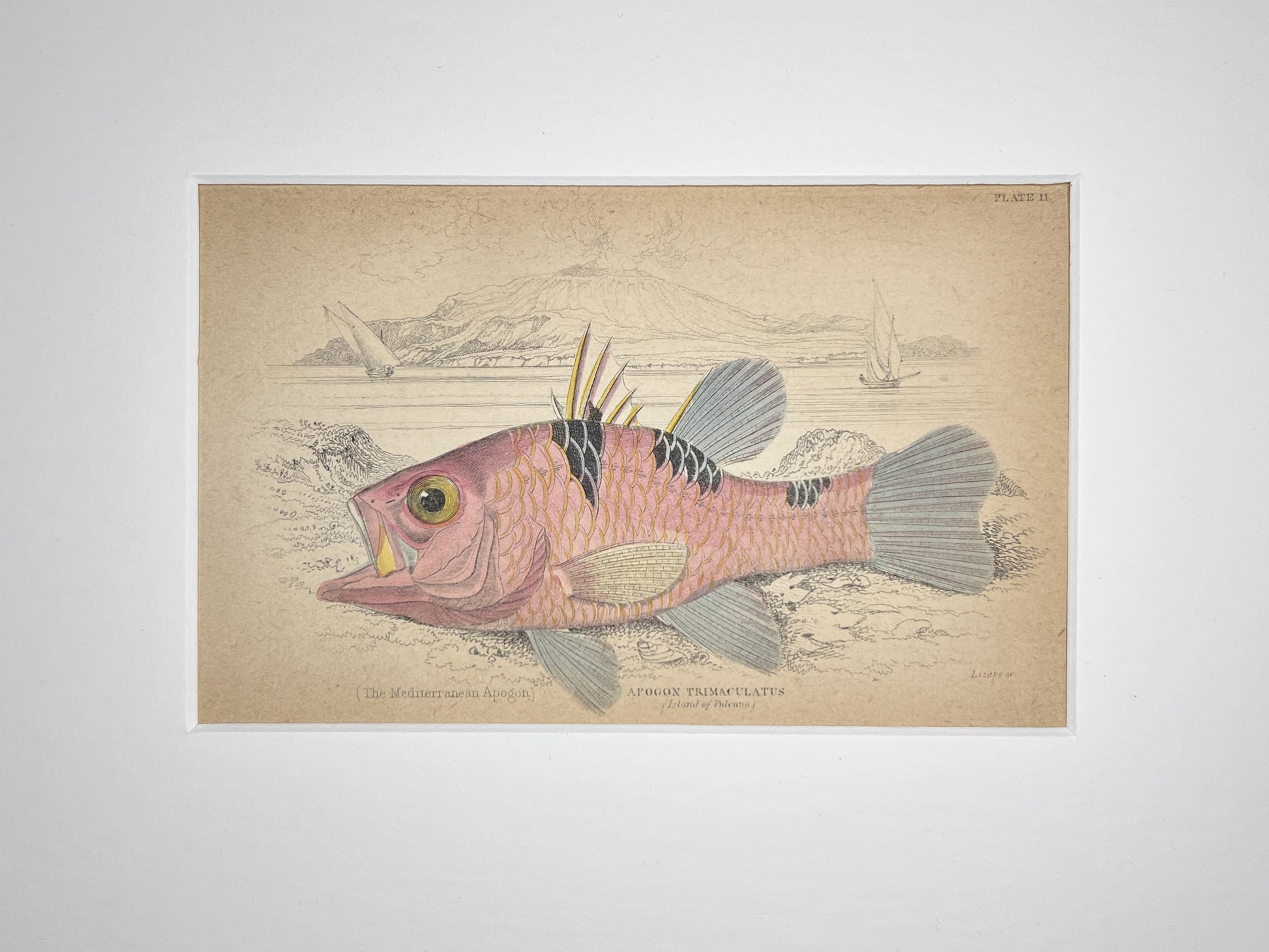 Offered for sale is an antique hand-colored engraving from Ichthyology, Fishes of the Perch Family edited by Sir William Jardine and published between 1841 and 1843. Each engraving is approximately 4” by 6” and comes matted and mounted on acid free archival materials.